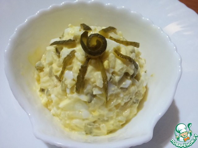 Сваренные вкрутую яйца и маринованные огурцы натереть на крупной терке.