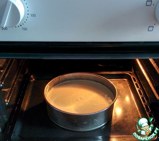 Выпекать наш чизкейк будем следующим образом: сначала ставим в разогретую до 200°С духовку на 15 минут, а затем убавляем температуру до 110°С и доводим чизкейк до готовности примерно час.