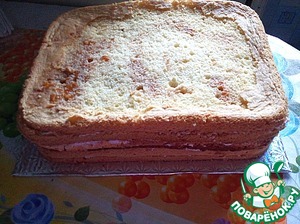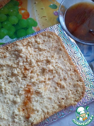 Приготовила бисквит по своему же рецепту http://www.povarenok .ru/recipes/show/134 260/, увеличив количество ингредиентов (я делала из 7 яиц, 210 г сахара, 210 г муки, соли, соды)