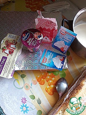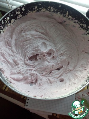 В миску вылила 33% сливки 400мл (2 уп.), взбила их 1 мин. и добавила к ним 2,5 пакетика загустителя и снова взбила до загустения.