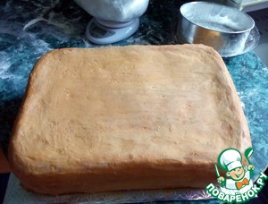Когда мой торт постоял в холодильнике сутки (с пропиткой и начинками), я его достаю