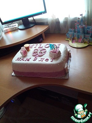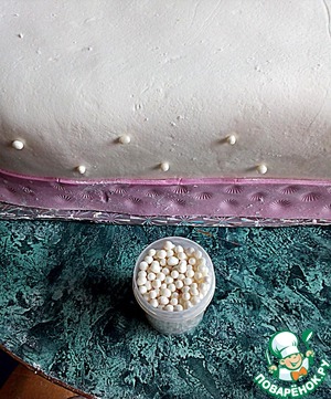 Раскатываем мастику на слегка припудренном крахмалом столе и обтягиваем ею торт (только ваша фантазия). Мне нужна была швейная фурнитура
