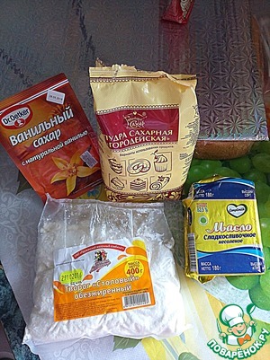 - Сахарная пудра (1,5 ст.л. - для йогуртового крема 550 г - для мастики 150 г - для творожного крема) — 700 г