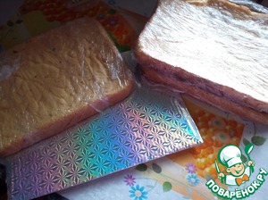 Берем наши бисквиты, их 3. У меня они в полиэтилене в холодильнике лежали сутки. Бисквиты я испекла заранее