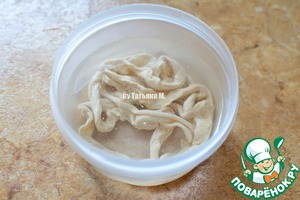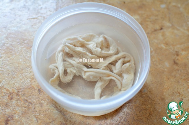 У меня говяжья, натуральную череву замочить в воде на 20 минут, промыть под краном под проточной водой, воду отжать; -