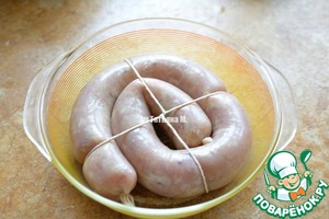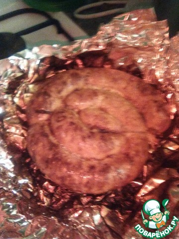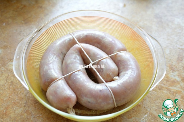Колбаску свернуть улиткой, закрепить жаропрочной нитью;