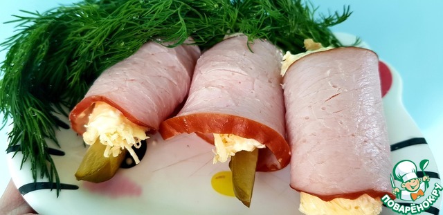 Заворачиваем в рулетик и закалываем зубочисткой.