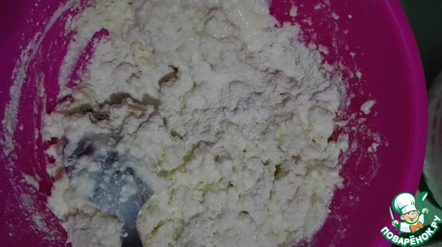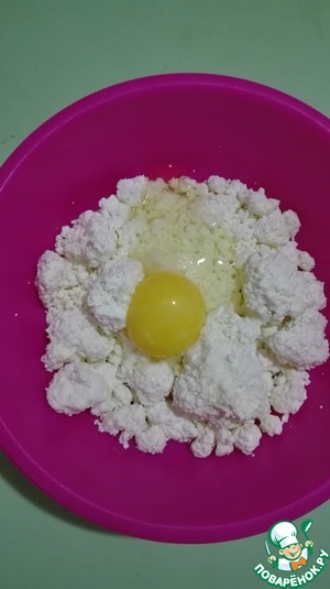 Смешать творог с яйцом. Если творог суховат, то добавить ещё одно яйцо.