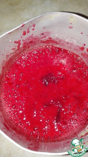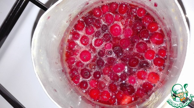 Пока пекутся сырники, сделаем соус. В маленькую кастрюлю высыпаем клюкву и клубнику (у меня клубника перетертая с сахаром)