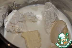 Нагреть молоко, сыр и масло до растворения двух последних. Остудить.