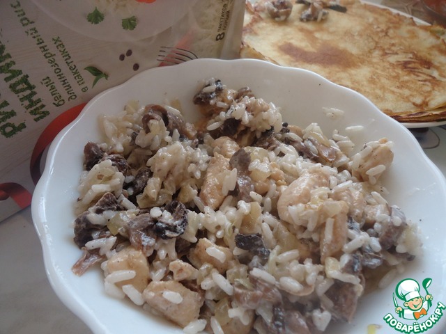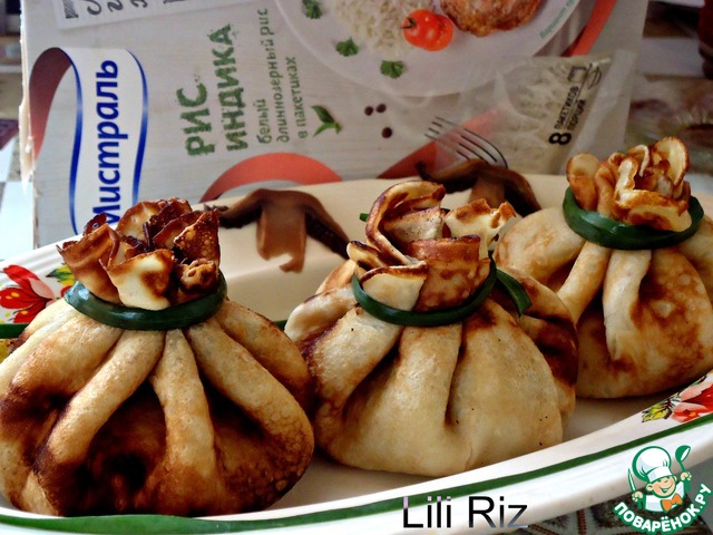 Усердно искала похожие рецепты на сайте, но не нашла, поэтому делюсь своим. Куриное филе, грибы и рис придают начинке сытость, и сами сочетаются между собой.