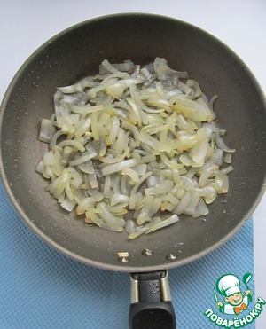 Быстро обжарим лук до прозрачности на оставшемся растительном масле буквально пару минут, добавив по щепотке соли и сахара. Лук должен оставаться хрустящим.