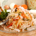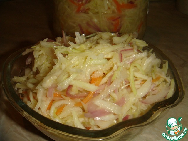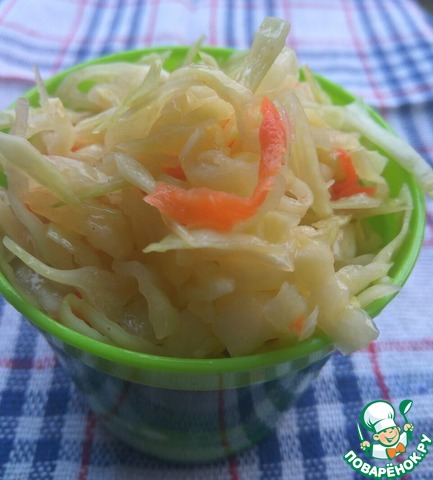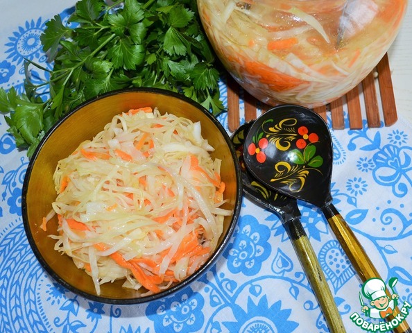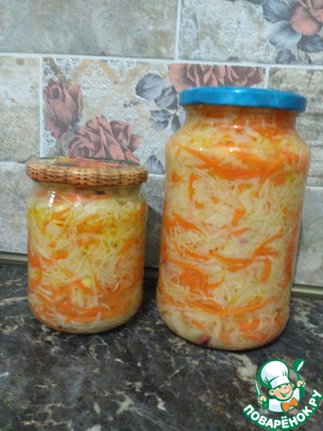Безусловно, на сайте много рецептов маринованной капусты, но все же рискну предложить вам свой вариант. Рецепт этой капусты из разряда "древних", пользуюсь им с неизменной любовью много лет. Хорош он тем, что капусту можно приготовить зимой в любой момент и на второй день подавать на стол. Перед новогодними праздниками неизменно делаем целую банку капусты, которая, после изобилия новогоднего стола, разлетается на "ура". Ну, а в пост и сезон авитаминоза и говорить нечего. Капуста получается необычная, сладковатая с горчичным привкусом.