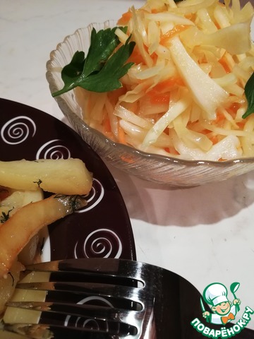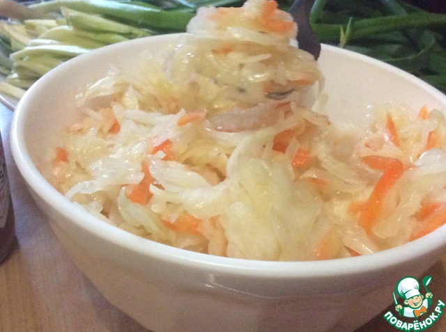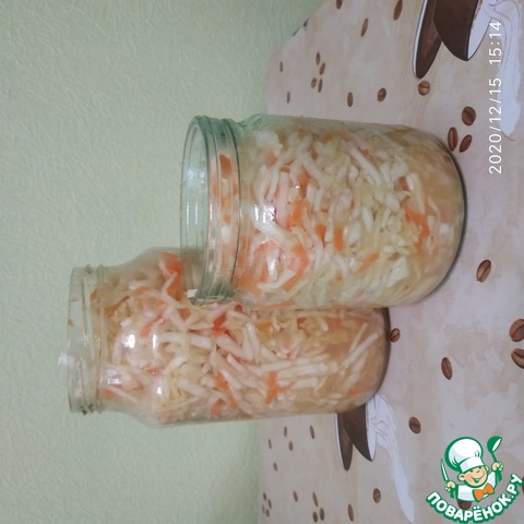 Буквально пару дней назад сама готовила эту капусту, к весне кочан стал менее сочный и дал маловато сока при добавлении маринада. Она просолилась чуть дольше, чем я писала.