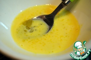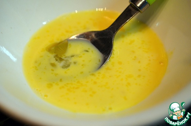 Желток взбить с молоком.