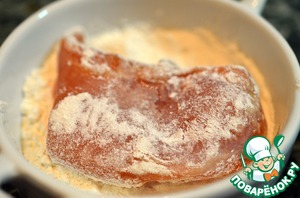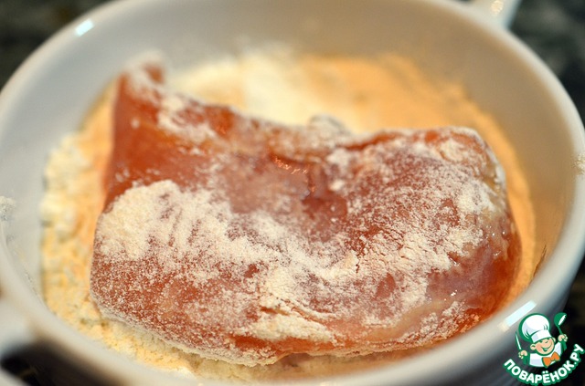 Обвалять кусочки филе в муке.