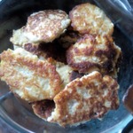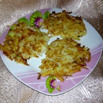 Мокрыми руками формируем из одной столовой ложки массы, оладушки или драники.