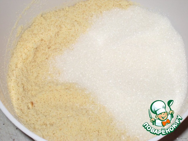 Для печенья: миндаль залить горячей водой на 15-20 минут, снять шкурку и немного прокалить в духовке.