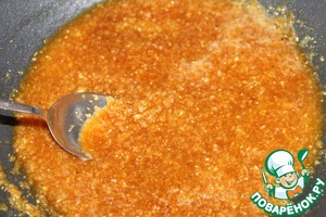 Вылить смесь в вок. К полученной смеси добавить специи из ступки