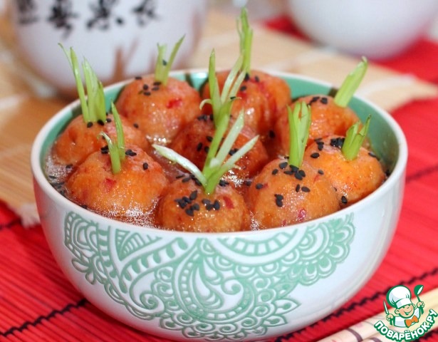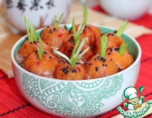 • Выкладываем шарики в теплую миску, поливаем соусом, украшаем зеленым луком, кунжутом и подаем. Маньчжурские шарики, хорошо сочетаются с рисом.