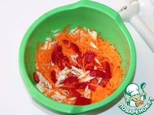 • В большой миске смешайте все овощные ингредиенты для шариков, кроме зеленого лука.