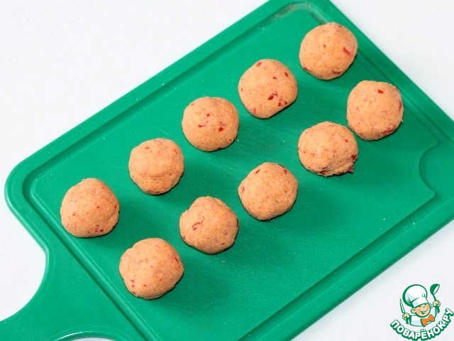 • Сформируйте шарики. Нагрейте растительное масло в небольшом сотейнике на среднем огне.
