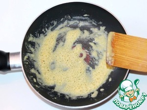• Затем выливаем соевую смесь, добавляем соль и периодически перемешиваем, пока соус не загустеет до средней густоты. Когда соус был готов, я его процедила через сито.