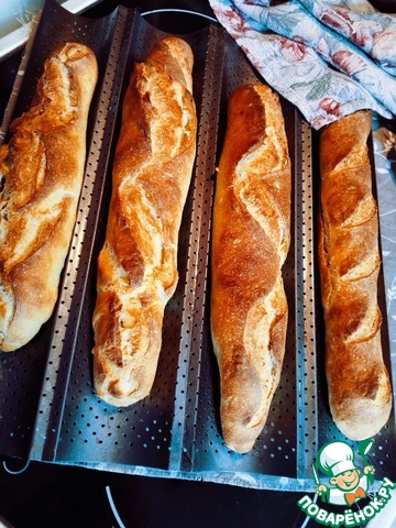 сделала в форме багетов, выпекала - 230 градусов с паром 15 минут, без пара 15 минут