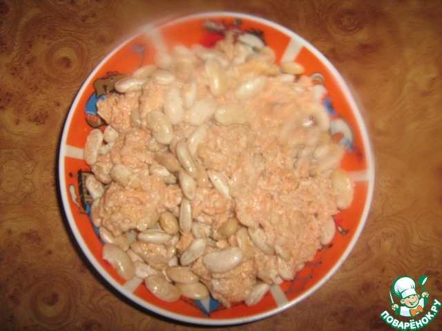Можно, как второй вариант, на фасоль выложить рыбу, то есть, поменять слои.