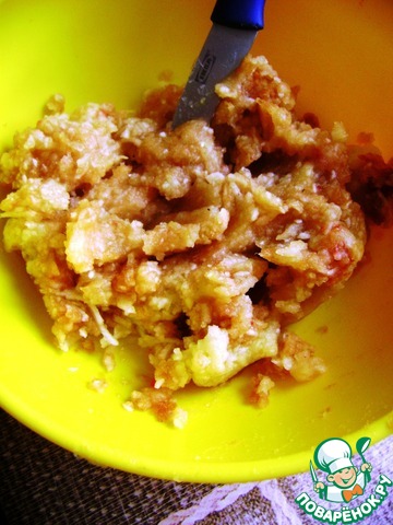 Яблоки без кожицы натереть на мелкой терке и смешать с остатками маринада. Добавить уксус и сахар.