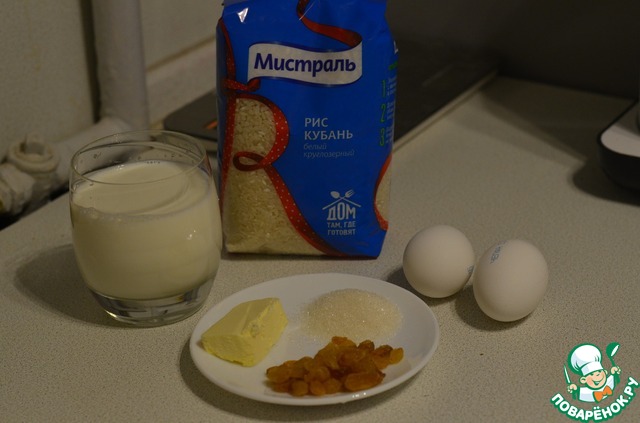 Ингредиенты для «Английский пудинг из риса с изюмом»: