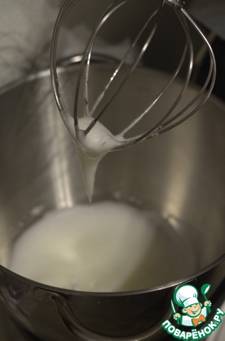 Вернемся к нашим белкам. Взбиваем их до образования густой пенки.