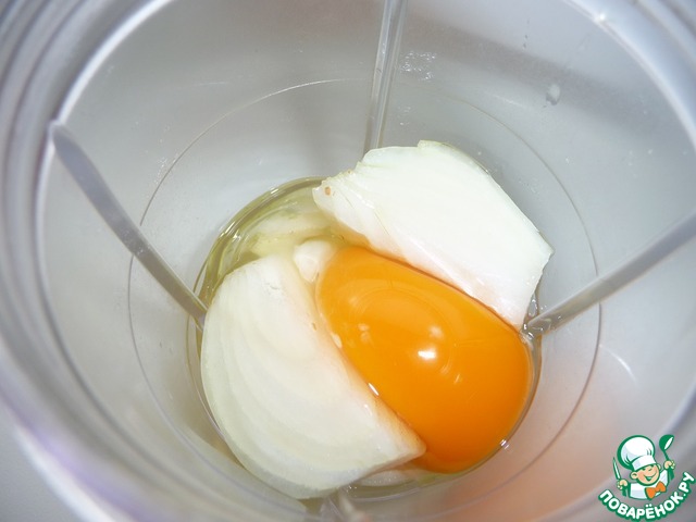 Лук и яйцо взбить в блендере.