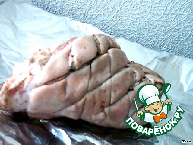 Тщательно оборачиваем в пищевую фольгу нашу рульку и ставим в печку при 130-140 градусах на 1,5-2 часа.