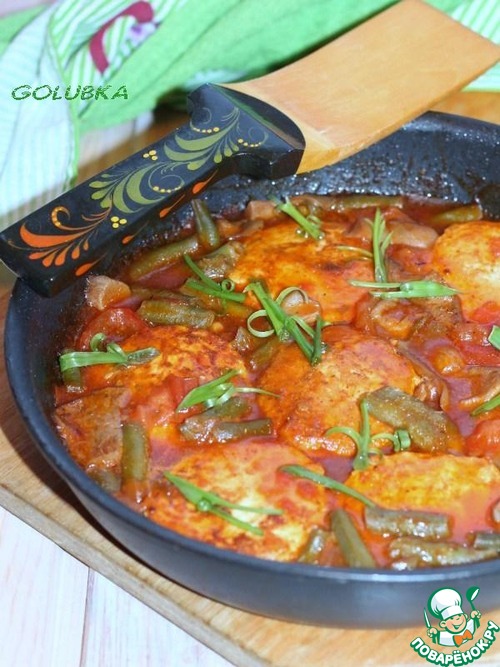 7. Добавить вино, зеленую фасоль, и тушить пока не выпарится вся жидкость.