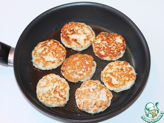 4... и добавить в фарш. Осторожно перемешать снизу вверх, чтобы белки не осели. Вылепить небольшие котлетки и присыпать мукой.