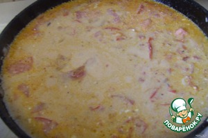 Все это выкладываем в сковороду. Добавляем соль и специи по вкусу.