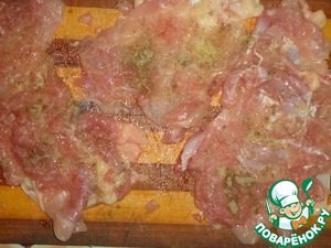 Мясо натереть чесноком, посолить, поперчить по вкусу.