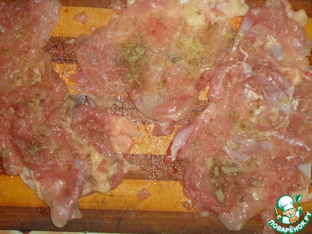 Рецепт «Рулетики куриные с рисово-грибной начинкой»: