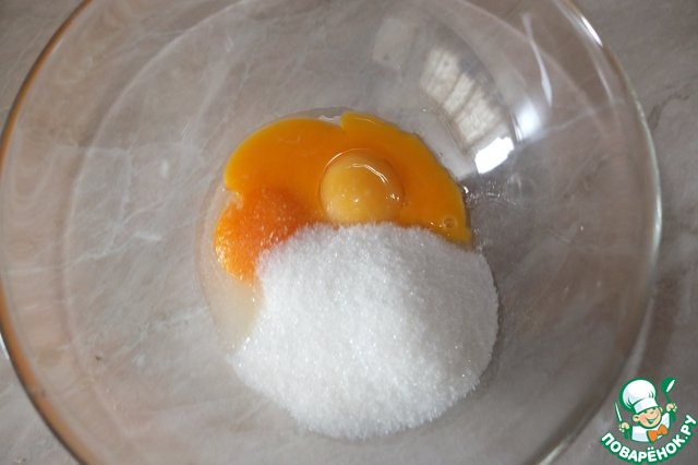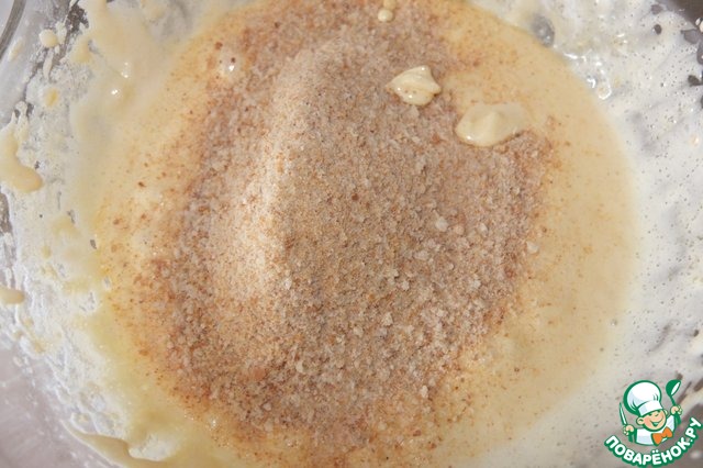 Панировочные сухари обжариваем на сухой сковороде, постоянно помешивая 5-7 минут. Белки отделяем от желтков. Желтки взбиваем сахаром до увеличения в объеме.