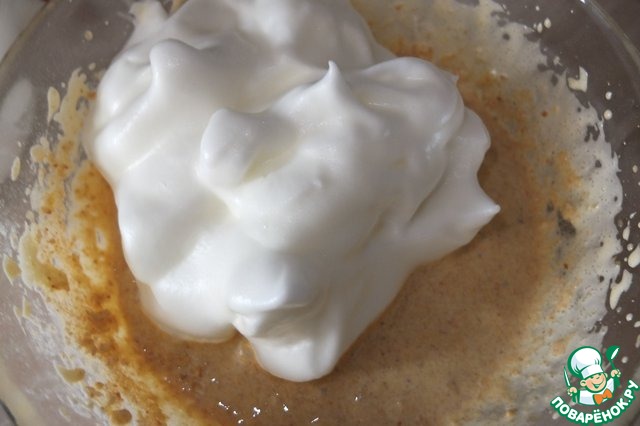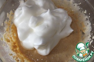 Вводим белки, аккуратно перемешиваем складывающими движениями.