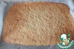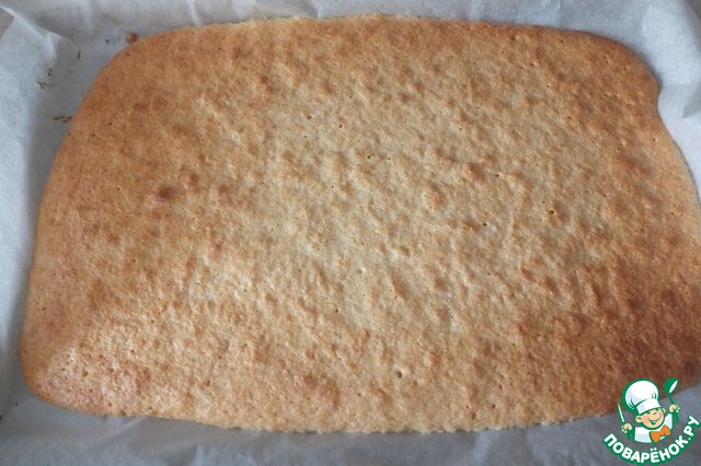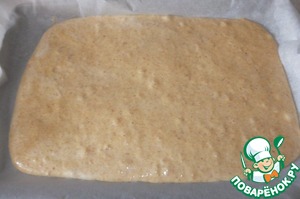 Противень (размер примерно 23 х 33 см) застилаем пекарской бумагой. Выливаем тесто ровным слоем. и отправляем в разогретую до 180 градусов духовку на 20-25 минут.