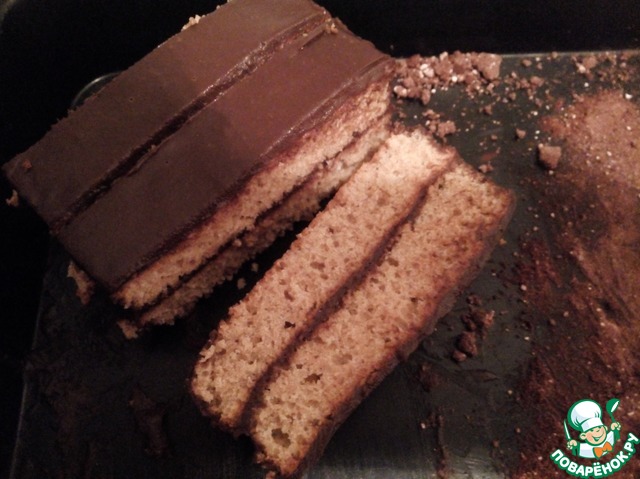 Получился плотный бисквит 2см толщиной. Глазурью поливала от души, чтобы было вкусно и не сухо.