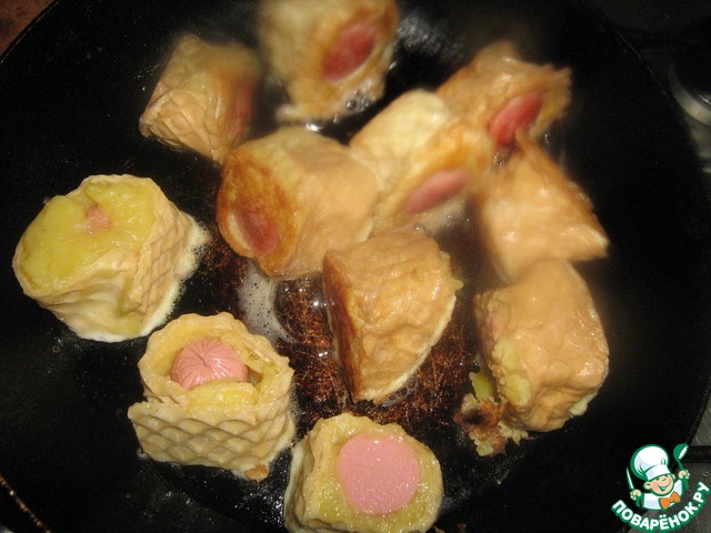 Рецепт «Сосиски с картофельным пюре в вафлях»: