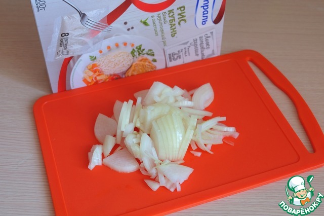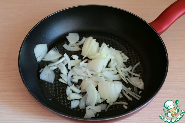 Порезать полукольцами репчатый лук.