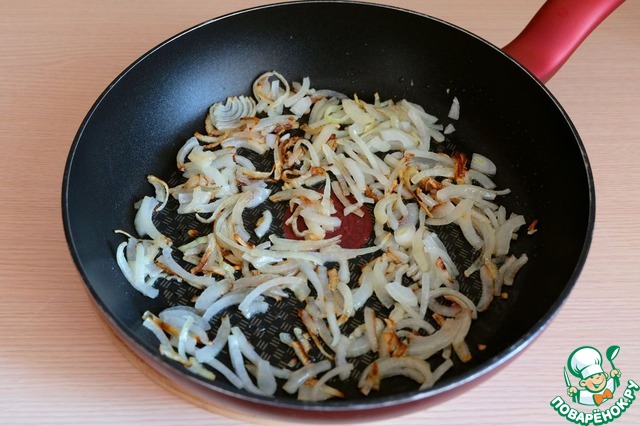 Пассеровать лук до румяной корочки.