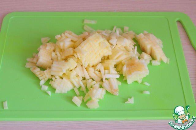 Яблоки почистить, удалить сердцевину, порезать мелкими кусочками.