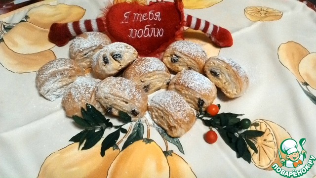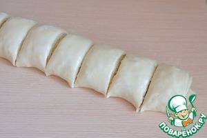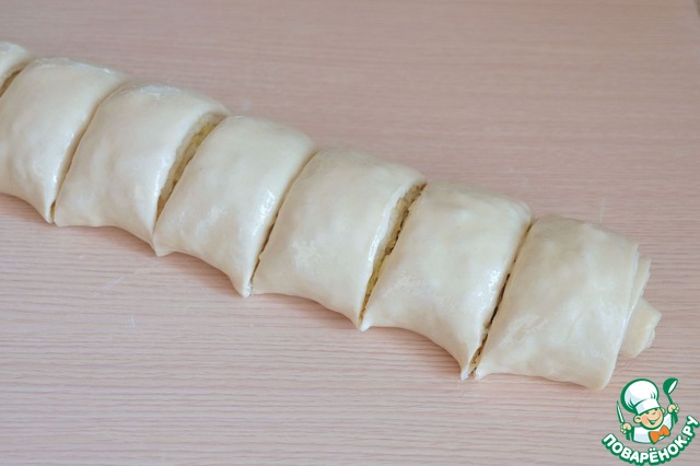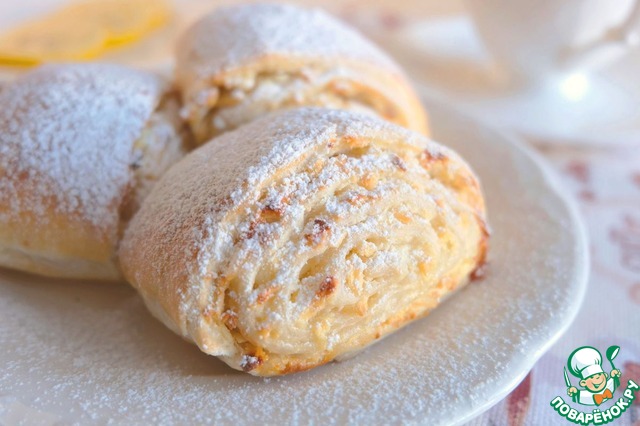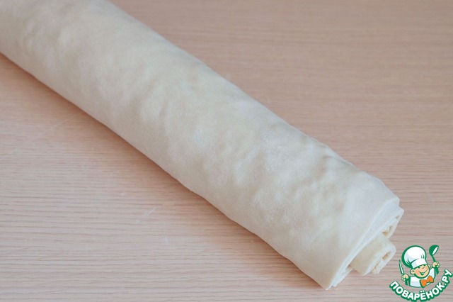 Слоёного бездрожжевого теста у меня не было, приготовила дрожжевое(500г.), не думаю, что это сильно повлияло на вкус.