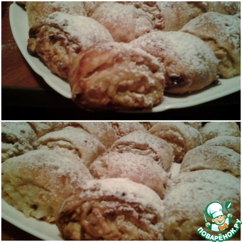Решила приготовить слойки с творогом.Творога в доме оказалась всего 1 пачка и не много колбасного сыра...Маловато на семью . Положение спас Ваш рецепт))Заменила яблоки сыром .Ну и конечно не добавляла сахар. Тесто беру слоёное дрожжевое(больше нравится).Очень удивило в рецепте наличие риса.Но решилась на эксперимент.И ни сколько не пожалела.Получилось очень нежно и вкусно!)
