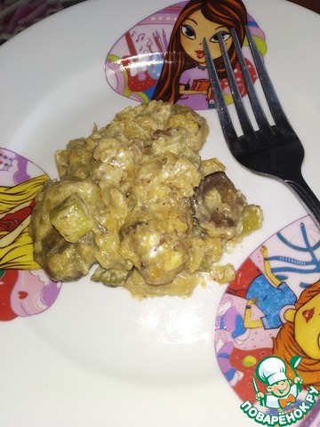 Ни риса ни макарон не было (лень было готовить). С кимчхи (свои) тоже не плохо. :)